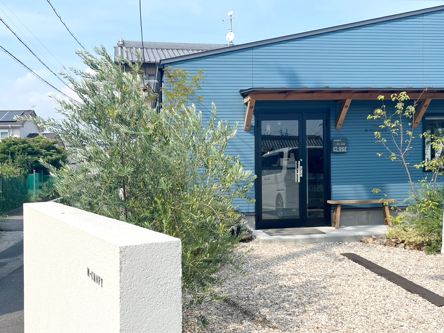 蒲郡市形原町にある、青い外観が目印のビストロ。